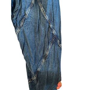 Sacred Threads Overalls Women L Blue Denim Patchwork Boho Y2K Retro Western 80s