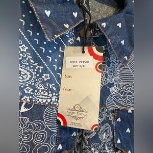 Sacred Threads Patchwork Paisley Floral Long Sleeve Button Up Shirt Sz L/XL NWT