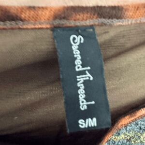 Sacred Threads Patchwork Tunic Top Colorful Asymmetrical Hem Artsy Boho Size S/M