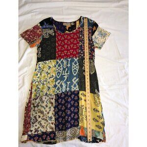 Sacred Threads Size S Dress Patchwork Art to Wear Shift Short Sleeve Mixed Print