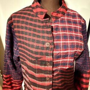 Stylish plaid women's jacket featuring a blend of red and black colors. Perfect for adding a bold touch to your wardrobe. Brand new. Fleece quilted. Flannel patchwork. So cute on and perfect for the fall!! Sz S/M fits sz ladies 6-10. Made by Sacred Thread’s. .