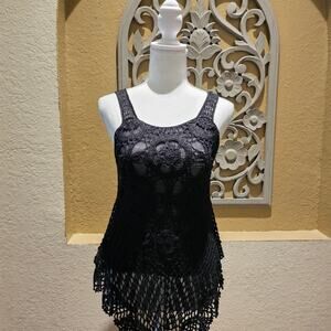 Sacred Trends Y2K Crochet Top S Black Grunge Goth Witchy Romantic Cottagecore