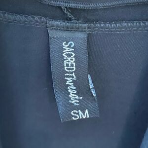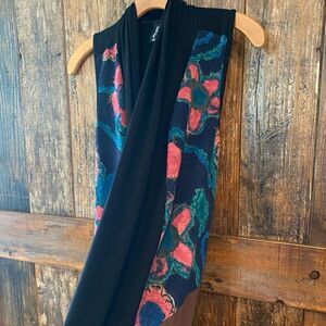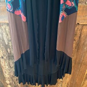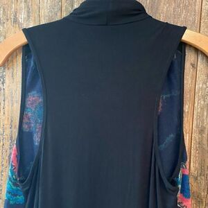 Sacred Threads S/M Black Teal BOHO Floral Fabric Lagenlook Sleeveless Duster