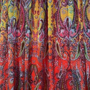 Skirt measures 38 inches long has a Lining has set in trim on the bottom lace on the top sheer paisley multicolored middle section new
