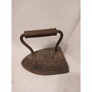 Sad Iron Antique Cast Flat Iron Rope Braid Grip Handle 8 Lb Ornate Brown 6" Inch