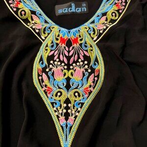 Sadan Ethnic Black Embroidered Abaya Kaftan Maxi Dress Size 48