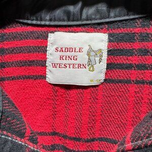 Saddle King Western Pearl Snap Flannel Shirt Men's M Red Plaid Thick Long Sleeve