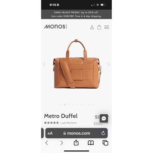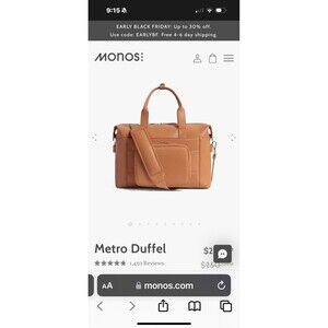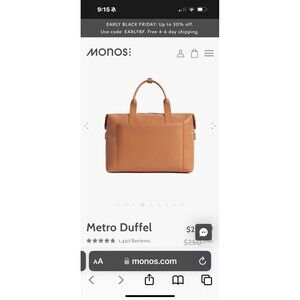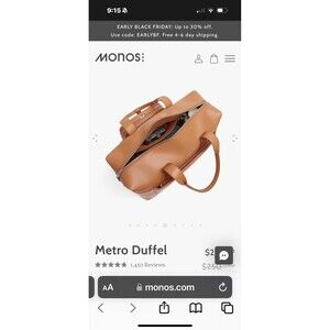 The duffel’s roomy interior is designed to keep all your essentials organized, with a sleeve that fits up to a 15-inch laptop and inner side pockets that allow for easy access to your water bottle or compact umbrella. The built-in trolley sleeve fits securely around the handle of any Monos suitcase for seamless pairing, and converts into an extra pocket when not in use.