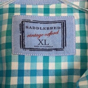 Saddlebread Vtg Oxford Button Down Plaid Shirt Aqua Green White XL *Tiny Flaw