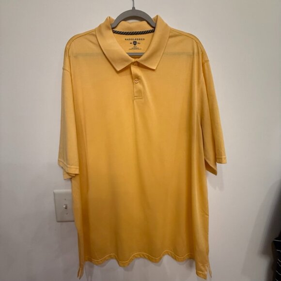 The Saddlebred Big & Tall 2XLT Polo Shirt is a stylish and comfortable option for men looking for a short-sleeve polo shirt in a vibrant yellow color.