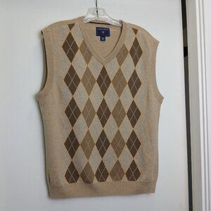 Saddlebred Beige 100% Cotton Knit V Neck Classic Argyle Vest SzM