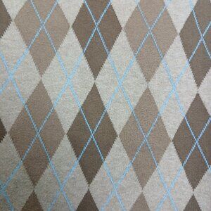 * Brown & camel diamonds with baby blue lines running throughthe argyle design on this nuetral beige base.
