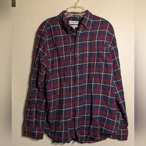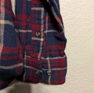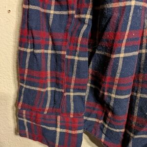 Classic plaid button-up shirt in red and blue. Perfect for casual wear.