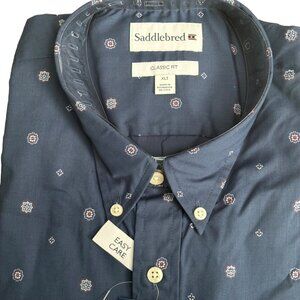 Stylish button-down shirt by Saddlebred, designed for easy care and durability. Classic fit in size XLT, featuring a subtle pattern on blue fabric.