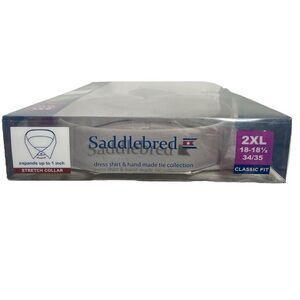 This Saddlebred dapple grey button up dress shirt comes with a matching gray and blue paisley handmade tie. Has a stretch collar up to one inch with removable collar stay. This Easy Care Stretch shirt is made of flexible fabric in a classic fit with a generous full cut body for added comfort. New in package and never worn.