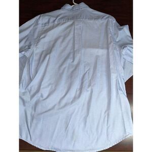 Lightly used. Size 16.5 neck and 34/35 sleeves. Has some staining on the front and bottom of sleeve. ( shown in pictures). Has a flaw on the pocket from pulling out ink pen (shown in pictures). Has some wear around the neck (shown in picture). Armpit to armpit laid flat measures about 23.5 inches.
