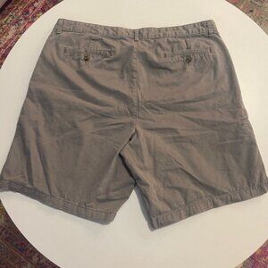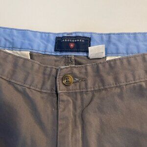 Saddlebred brand men’s shorts. Grayish green color. Size 40W. Good used condition. Side pockets. Back flat button pockets. Right leg has small pocket.