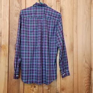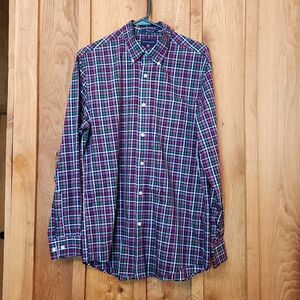 Saddlebred Long Sleeve Button Down Shirts Bundle, Medium, Blue & White Plaid & Red, Green, & White Plaid shirts in Great Condition.