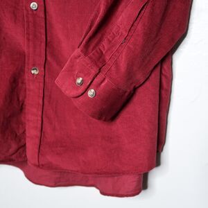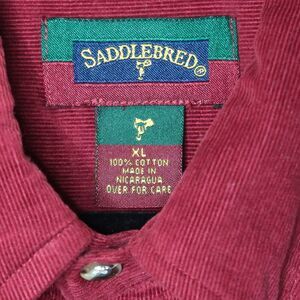 Saddlebred Mens Corduroy Button Up Shirt XL Red Burgundy Cotton Academia Classic