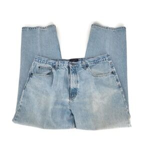 Saddlebred Mens Jeans 38x32 Blue Classic Straight Fit Distressed Denim Bottoms