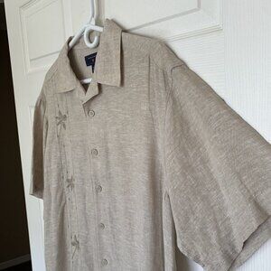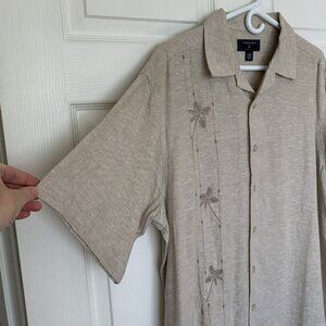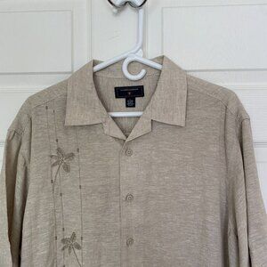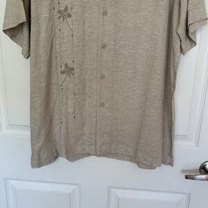 Saddlebred Men’s Size Large Khaki Linen Rayon Palm Trees Short Sleeve Shirt