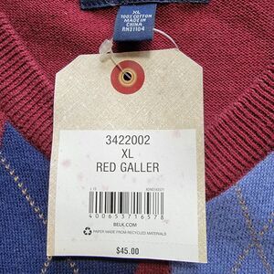 Saddlebred Mens Sweater Vest XL Red Argyle V Neck Pullover Extra Large NEW Tags