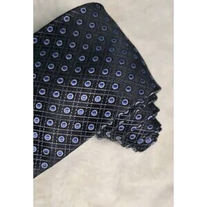 Saddlebred Men's Tie Circular Geometric Pattern 100% Silk Black Blue. This is a very pretty tie. In great condition. See photos for measurements.