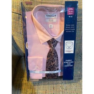 Saddlebred NIB Pink Button-Down Easy Care Shirt w/Tie, Men’s Size 2XL, MSRP $75