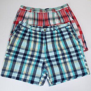 Men's Saddlebred Plaid Shorts Bundle. Pleated Front, Elastic Waist Band. 100% Cotton. Size 40.