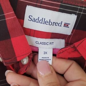 Saddlebred red/black plaid button up mens shirt, 2X