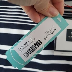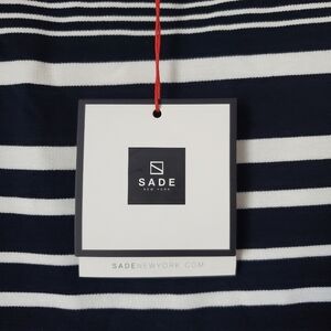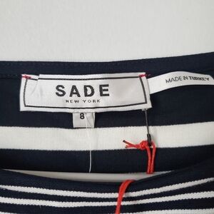 Sade New York Chenin Navy Knit Striped Belted Short Sleeve Midi Dress NWT