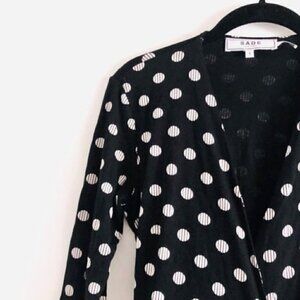 Jersey wrap dress with a classic Martey black and white polka dot print by Sade New York. Size 2.