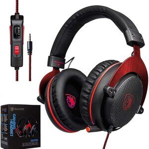 This is a New in original box SADES CX-778 gaming headset. The SADES Gaming Headset with Microphone in red and black offers gamers a high-quality audio experience with its ear-cup design and built-in microphone. Perfect for immersive gaming sessions, this headset provides clear communication and audio for a competitive gaming environment.