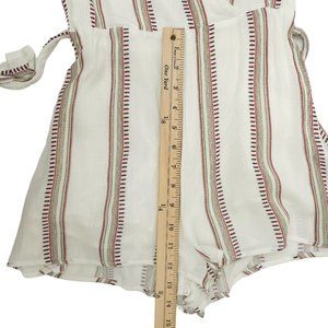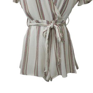 Sadie And Sage Striped Romper Size S Tie Belt Back Zip Lined Deep V Neck