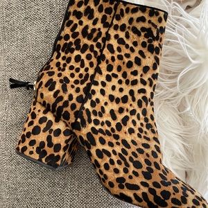 Jcrew Women's Brown Pointed-toe Sadie Boots In Leopard Calf Hair Brand New!