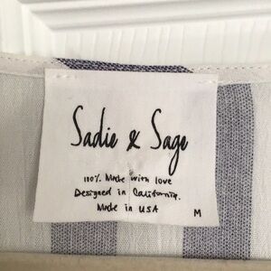 This Sadie and Sage blouse is perfect for a boho-chic look. The blue and white stripes are eye-catching and flattering. The bell sleeves add a touch of whimsy. The blouse is in excellent condition.