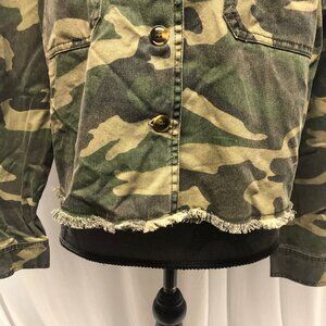 Sadie & Sage Camouflage Jacket Frayed Hem Womens Size Medium Cotton Outerwear