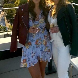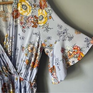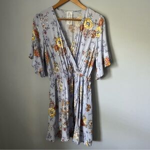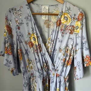 Sadie & Sage Faux Wrap Sky Blue English Summer Floral Mini Dress Size Medium