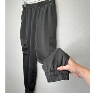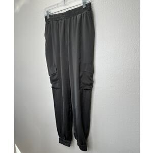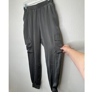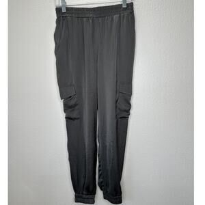 Sadie & Sage Gray Satin Utility Pocketed Elastic Waist Jogger S