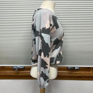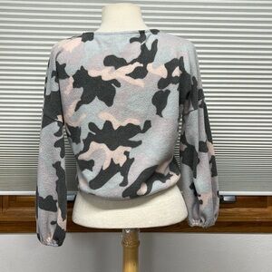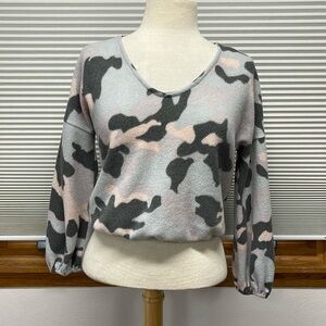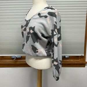Sadie & Sage Gray and Pink Camo V-Neck Soft Cropped Sweater Size XS