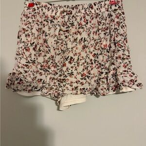 These high-waisted shorts from Sadie & Sage feature a delicate floral pattern in white and red, offering a chic and feminine look. Crafted from a soft, lightweight material, they are perfect for casual outings or lounging at home. The ruffled hem adds a playful touch to this stylish piece.