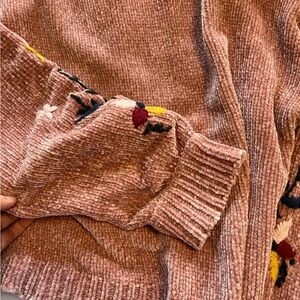 Sadie & Sage | Light pink chenille sweater cottage core twee boxy flowers