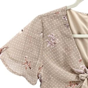 Sadie & Sage NWOT Women Size Small Tie Front Floral Romper Flutter Short Sleeve