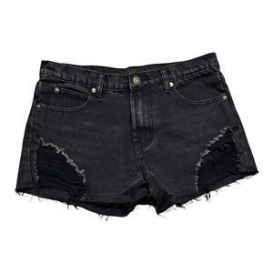 Sadie & Sage NWT Black Distressed Denim Shorts Sz S Raw Hem Micro 1.5" Inseam