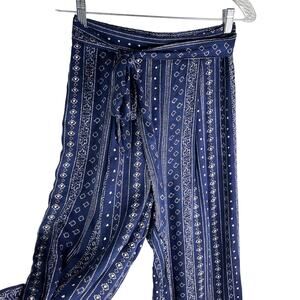 Sadie & Sage Pants Wide Leg Pants Navy Cream Small Lined Belted Boho New