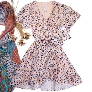 Sadie & Sage Pastel Peach Wrap Lined Dress Sz L