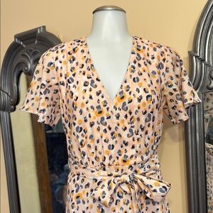 Sadie & Sage Pink Leopard Print Wrap Mini Dress with Flutter Sleeves and V-Neck