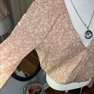 Sadie & Sage Pink Wrap Blouse Long Sleeve Fitted