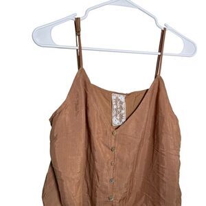Sadie & Sage Tank Top Women's Large Brown Button Up Tie Sleeveless Cropped Boho