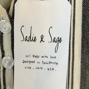 Sadie & Sage V-neck Striped Lined Jumpsuit - Size Small - Black & white striped jumpsuit w/ functional button detailing on front & keyhole closure at back of neck - Lightweight; 100% rayon -